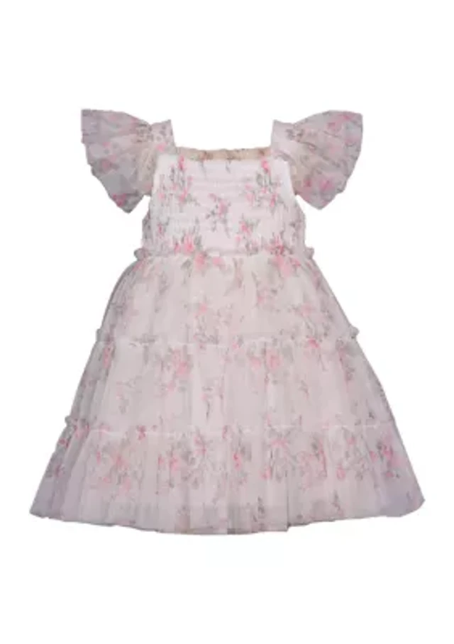 Toddler Girls Floral Printed Shirred Dress