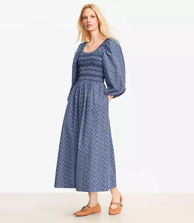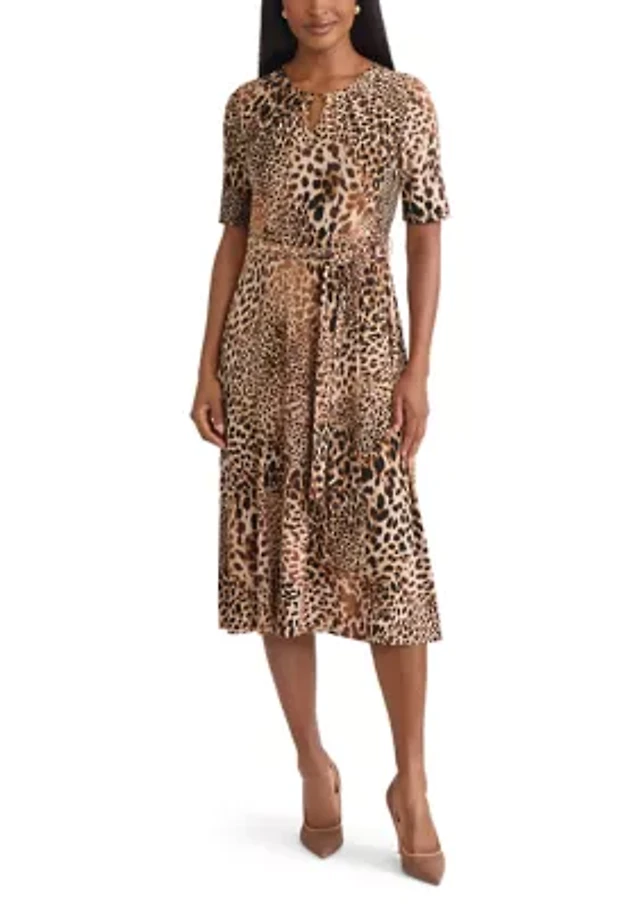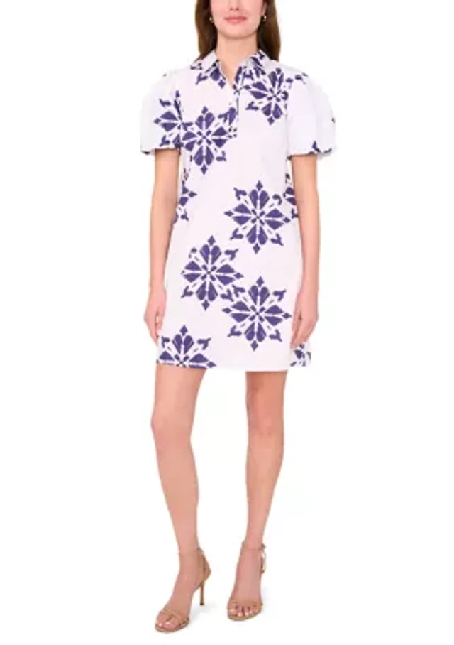 Petite Balloon Sleeve Printed Jacquard Dress