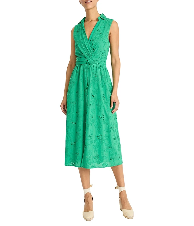 Maggy London Double V-neck Sleeveless Floral Tropical Printed Voile Midi Dress