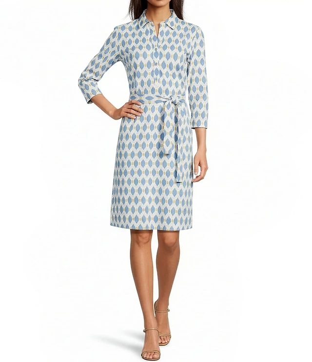Lauren Ralph Lauren Plus Size Point Collar Elbow Sleeve Tie Front Shirt Dress