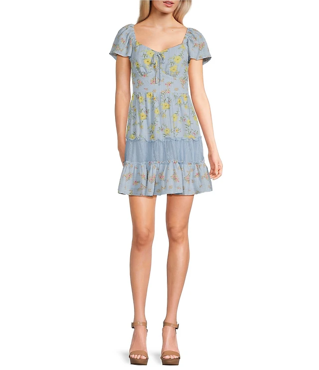 Allison & Kelly Floral Print Flutter Sleeve Empire Waist Smocked Bodice Tiered Babydoll Dress