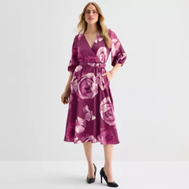 Liz Claiborne Womens Tall Short Sleeve Floral Midi Fit + Flare Dress