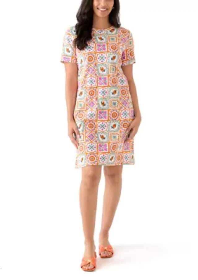 Women's Short Sleeve Crew Neck Floral Print Scuba A-Line Dress
