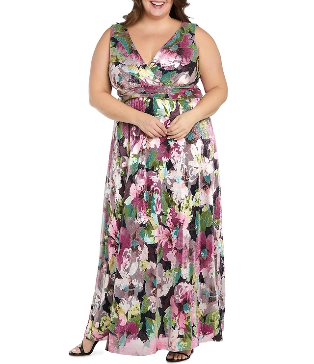 White Mark V-Neck Womens Plus Short Sleeve Floral Empire Waist Dress