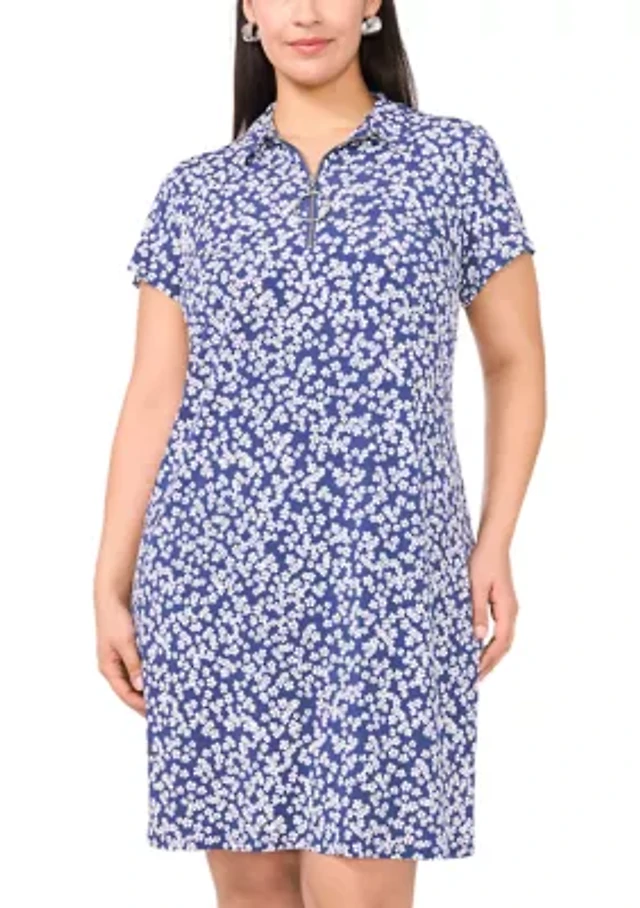 Plus Short Sleeve Scoop Neck Chiffon Dress