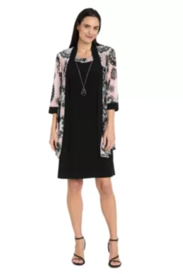 JS Collections Violette Soutache Mesh 3/4 Sleeve Square Neck Sheath Midi Dress