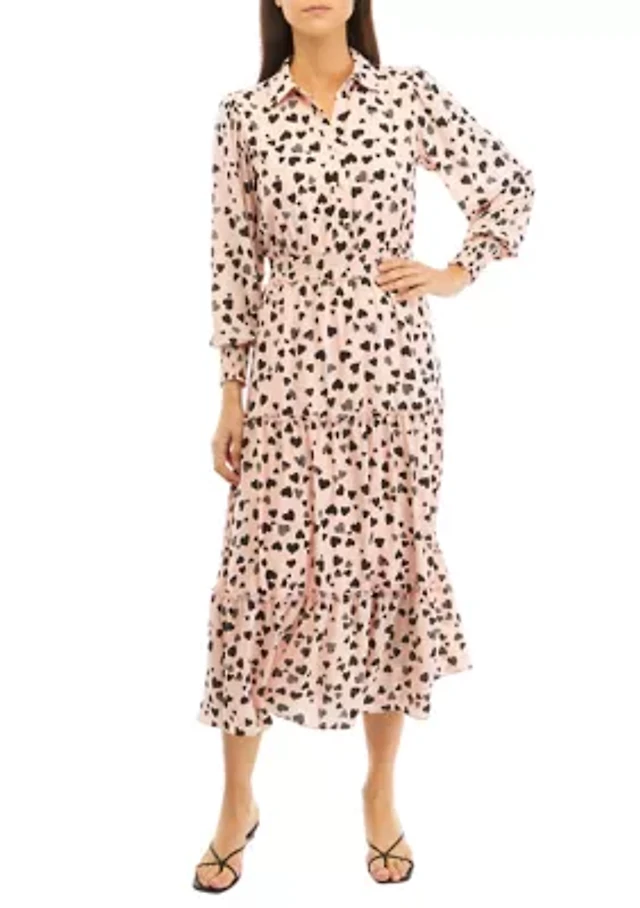 Anne Klein Floral Printed Long Sleeve Belted Shirt Dress