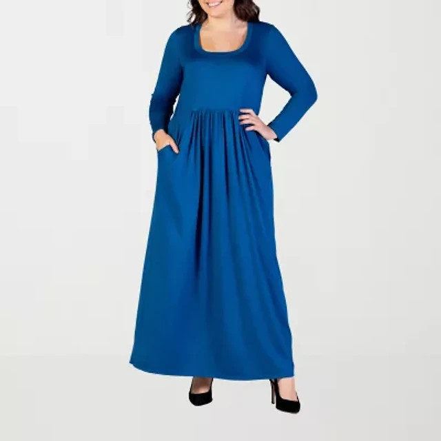 24seven Comfort Apparel Womens Plus Long Sleeve Maxi Dress