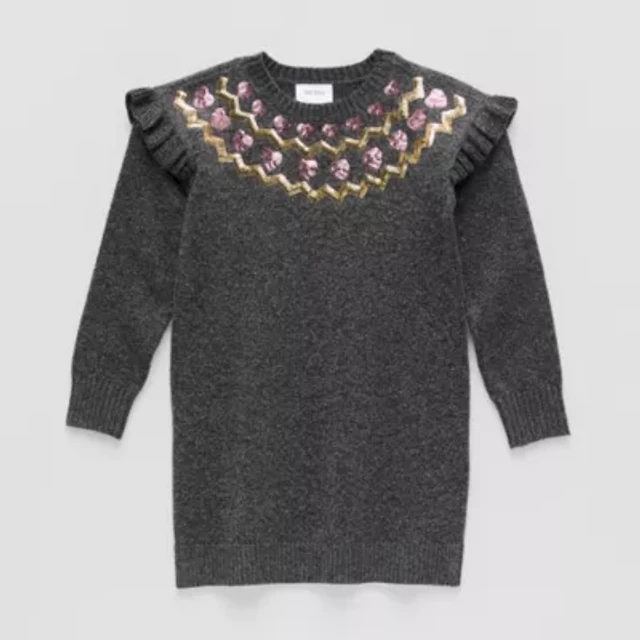 Allison & Kelly Big Girls Boucle/Solid Long Sleeve Shift Dress