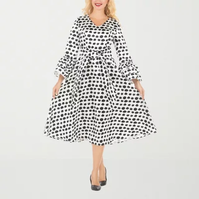 Women's Long Sleeve Print A-Line Midi Dress