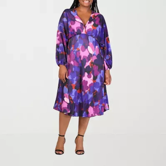 Maia Womens Plus Long Sleeve Midi Sweater Dress