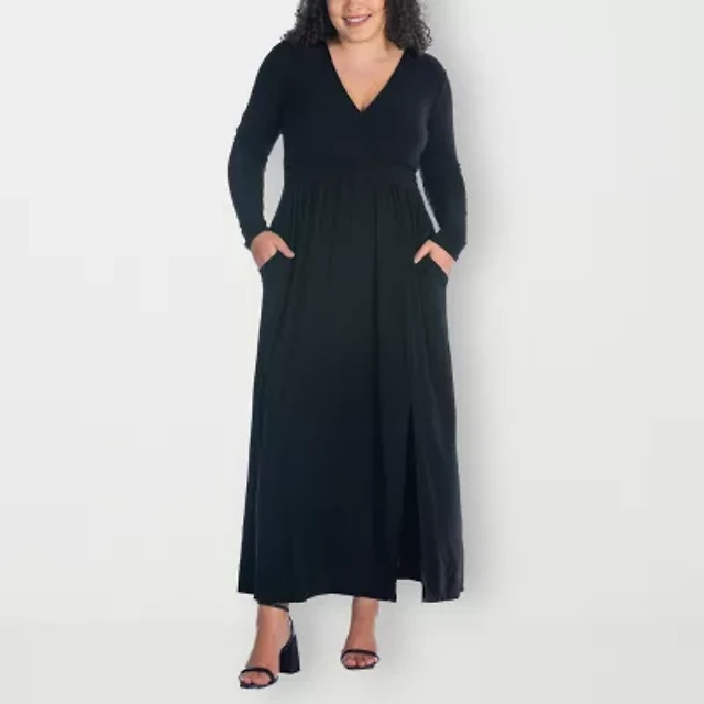 24seven Comfort Apparel Womens Plus Long Sleeve Maxi Dress