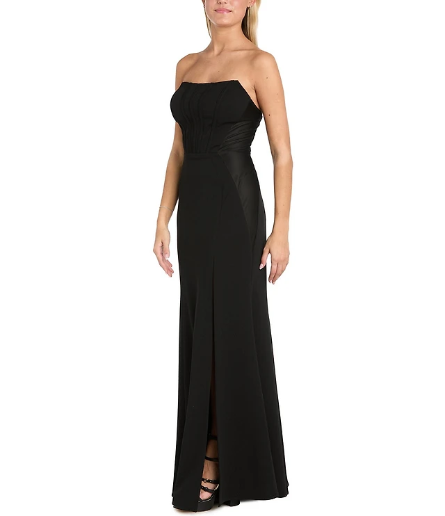Morgan & Co. Strapless Bustier-Bodice Stretch Scuba Crepe Long Dress