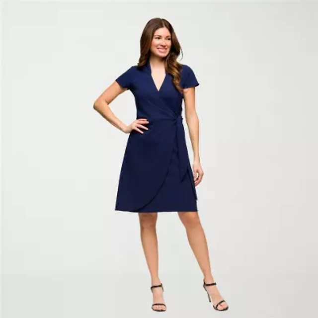 24/7 Comfort Apparel Faux Wrapover Dress with Cap Sleeves