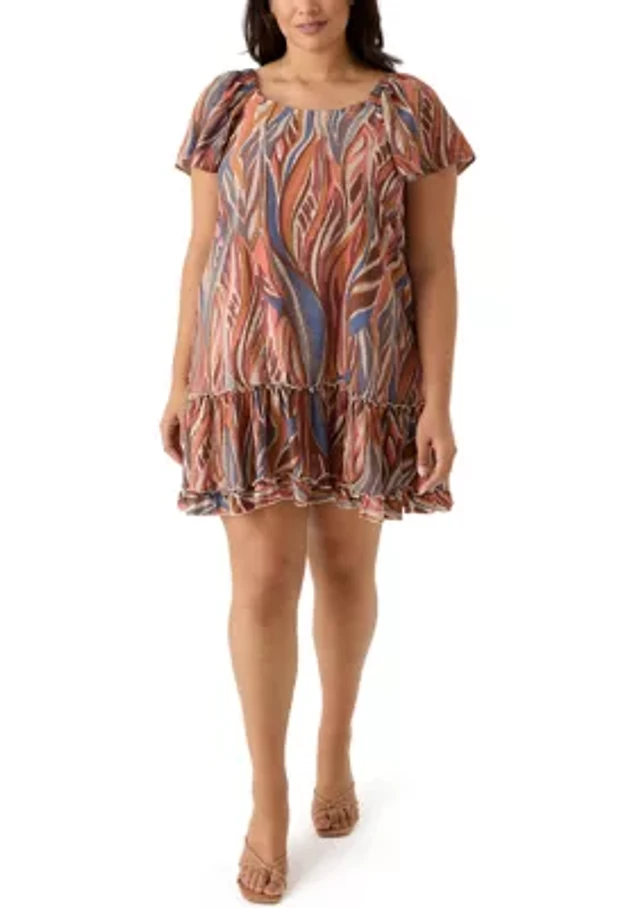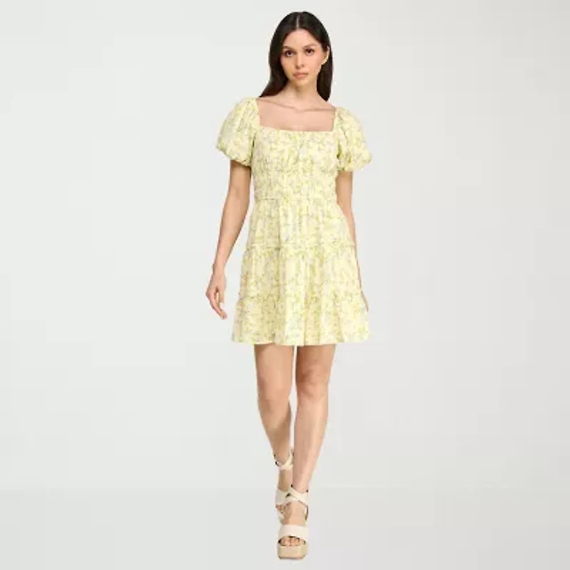 Ignite Evenings Short Sleeve Tiered Floral Print Midi Dress