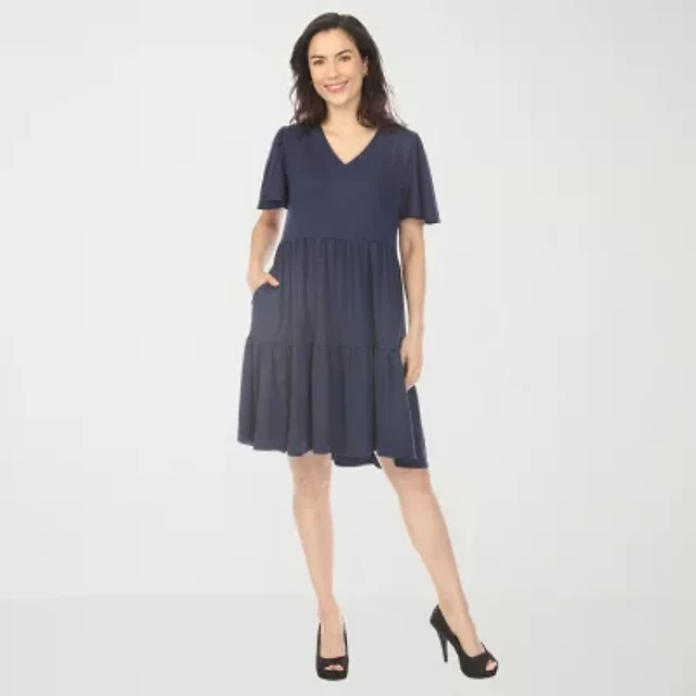 Midnight Doll Flutter Sleeve Double-Hem Fit & Flare Dress