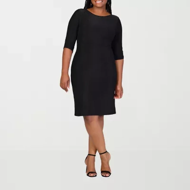 Anne Klein Matte Jersey Elbow Sleeve Draped Midi Dress