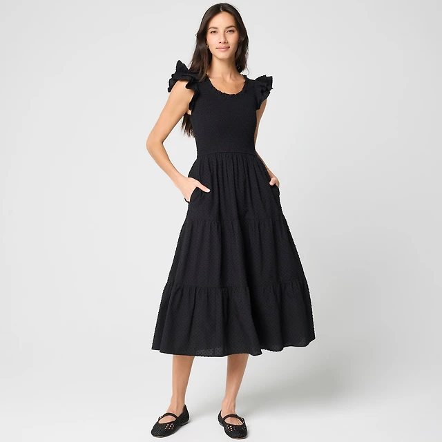 Midnight Doll Smocked Plaid Puffed Sleeve Ruffle Tiered Maxi Dress