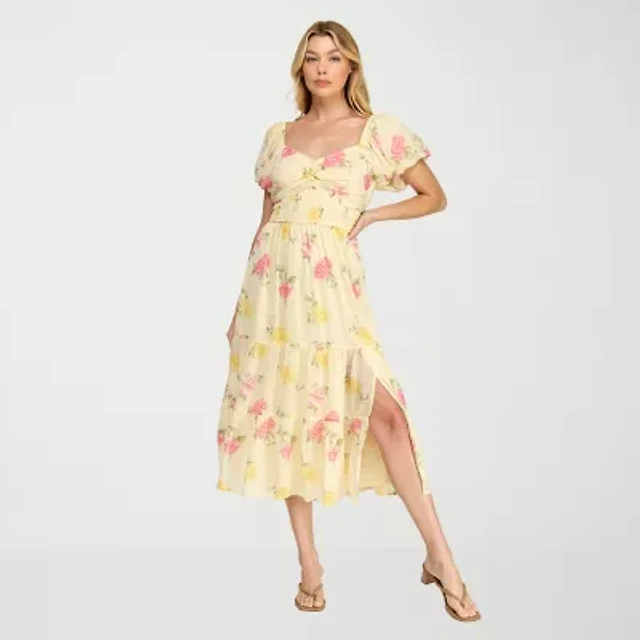 Maggy London Satin Charmeuse Floral Print Short Sleeve Midi Dress