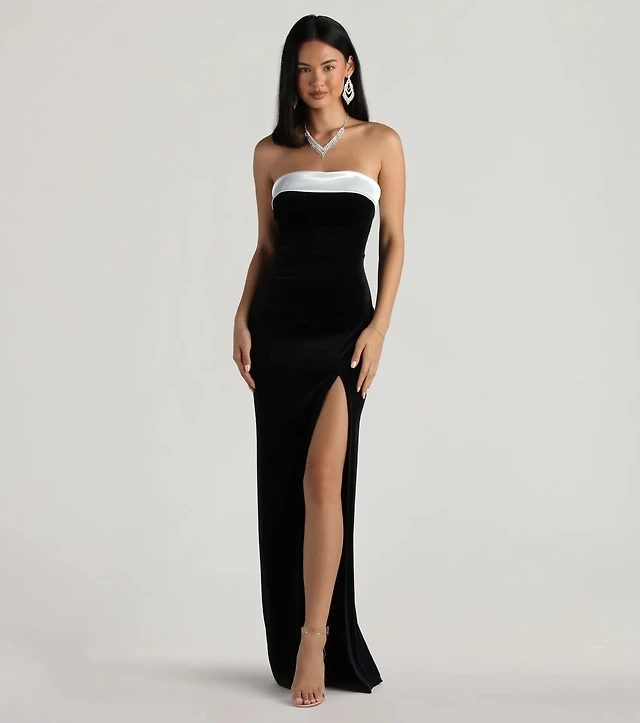 Marilyn Formal Velvet Strapless Satin Long Dress