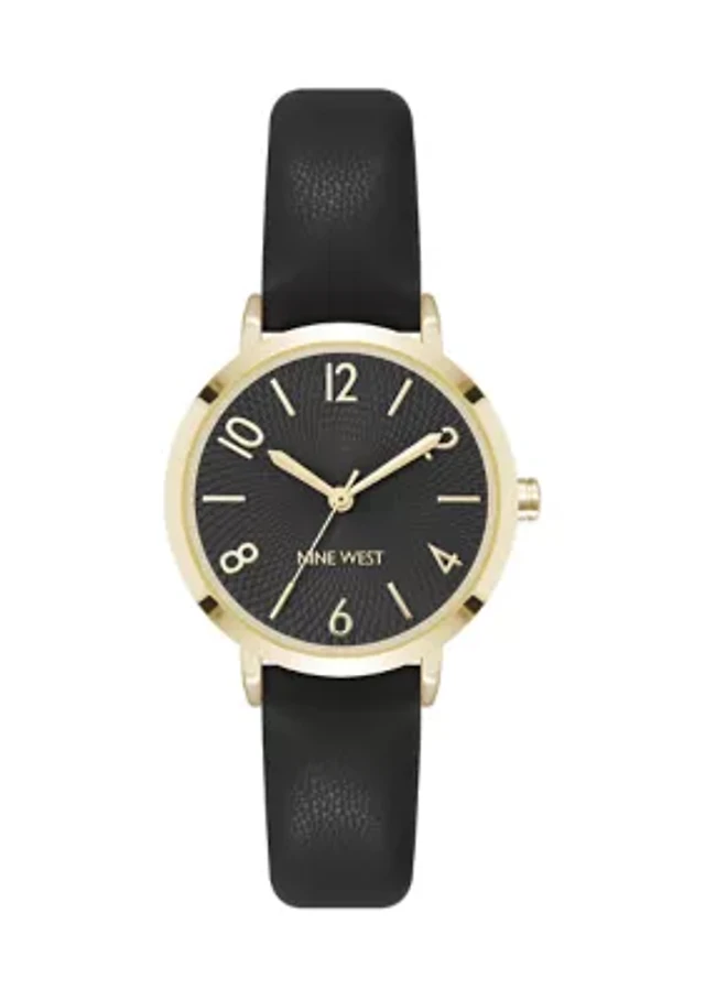 Women's Quartz Round Faux Leather Strap Watch