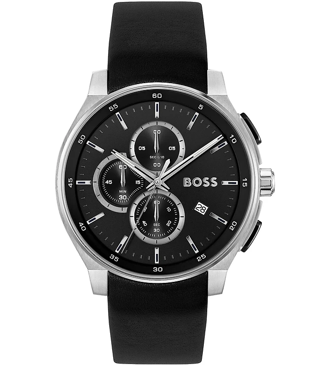Men's Essentials Quartz Chronograph Black Dial Stainless Steel Case and Bracelet Watch