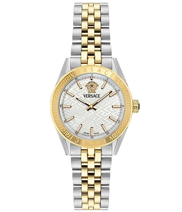 Versace Women's Greca Time Petite Quartz Analog Two Tone Stainless Steel Bracelet Watch