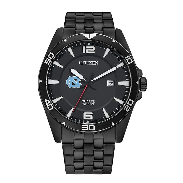 Men's North Carolina Tar Heels Citizen Quartz Black-Tone Stainless Steel Watch