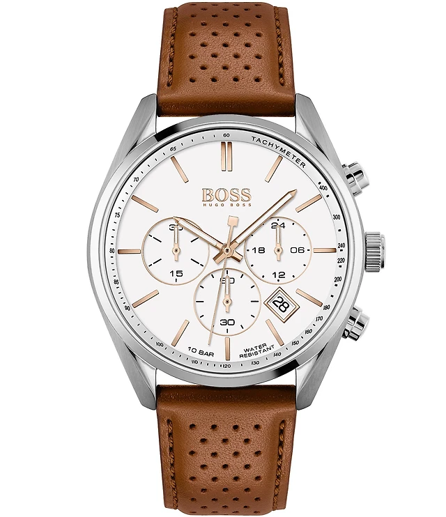 Hugo Boss Men's Chronograph Champion Brown Perforated Leather Strap Watch
