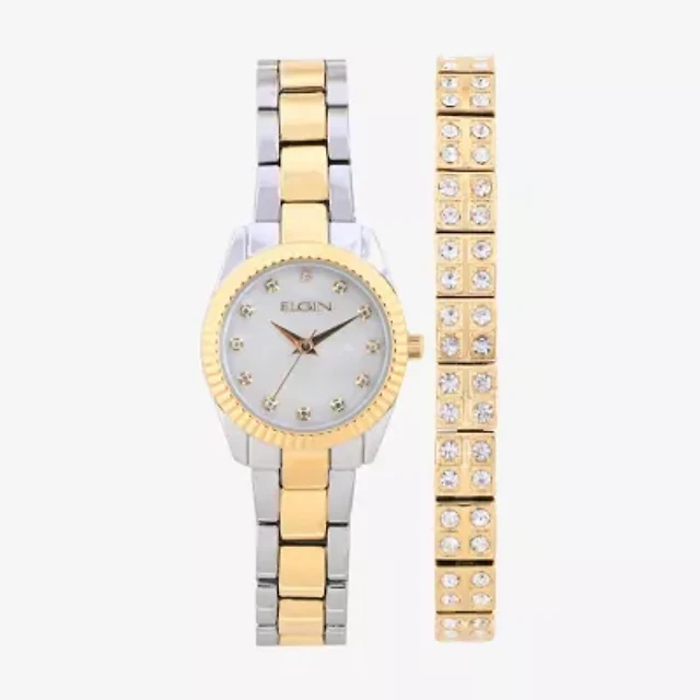 Elgin Womens Crystal Accent Two Tone Bracelet Watch Eg170033st