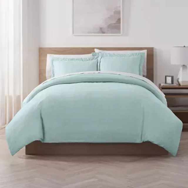 Pointehaven Printed Or Solid Cotton Duvet Cover Set