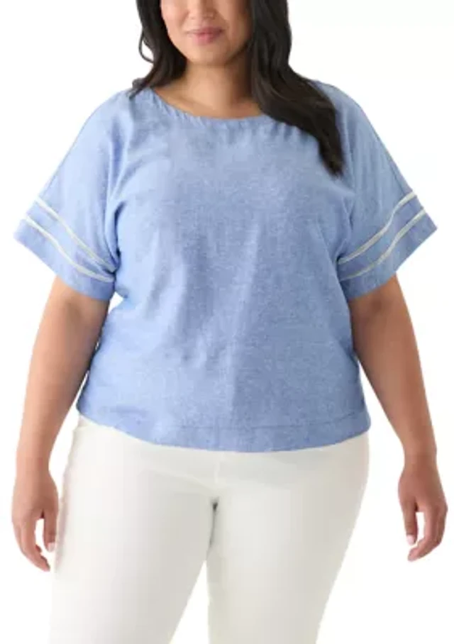 Plus Short Sleeve Double Ruffle Woven Shirt