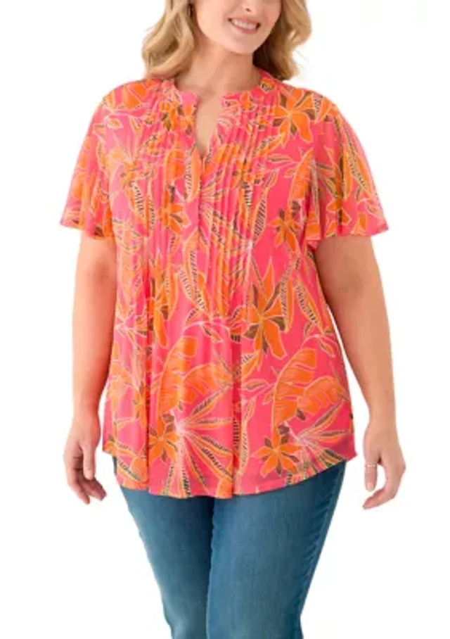 Women's Flutter Sleeve Split Neck Floral Blouse