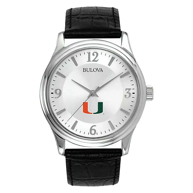 Men's Silver Miami Hurricanes Leather Watch