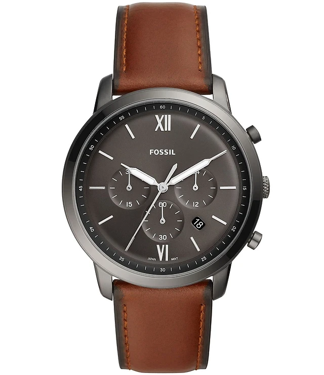 Men's Fossil Brown Chicago Cubs Minimalist Leather Watch