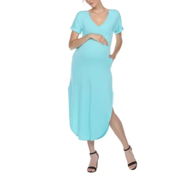 Faux Wrapover Maternity Dress with Cap Sleeves