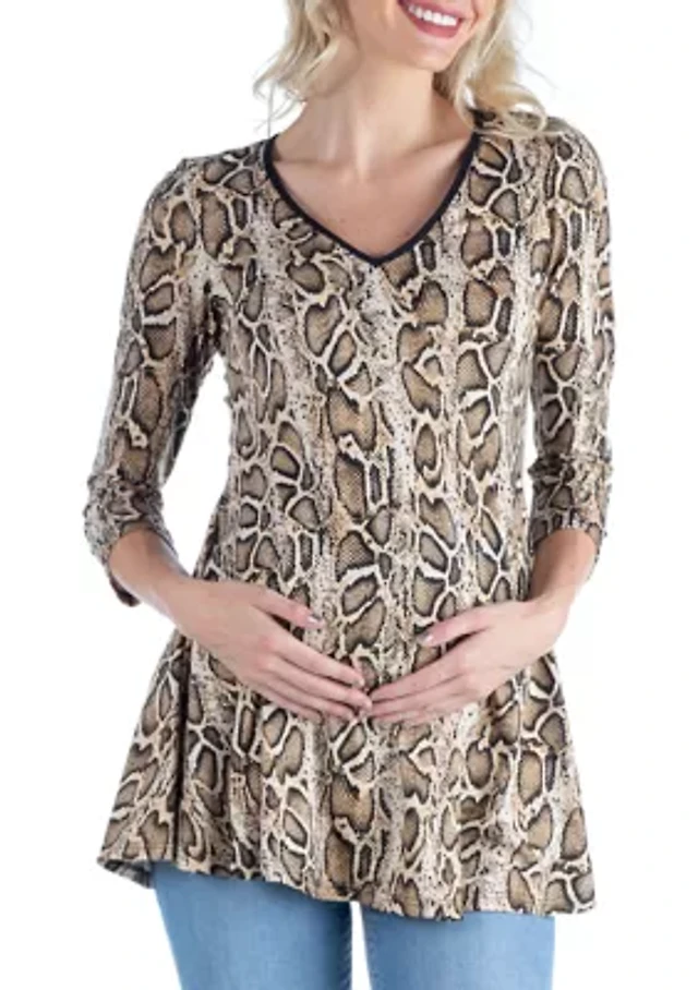 Maternity Brown Floral Print Long Sleeve Tunic Top