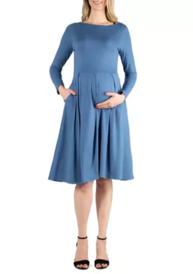 Knee Length A Line Elbow Sleeve Maternity Dress