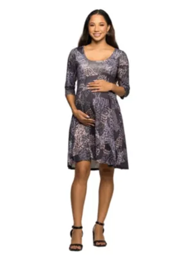 24seven Comfort Apparel Womens Maternity 3/4 Sleeve Fit + Flare Dress