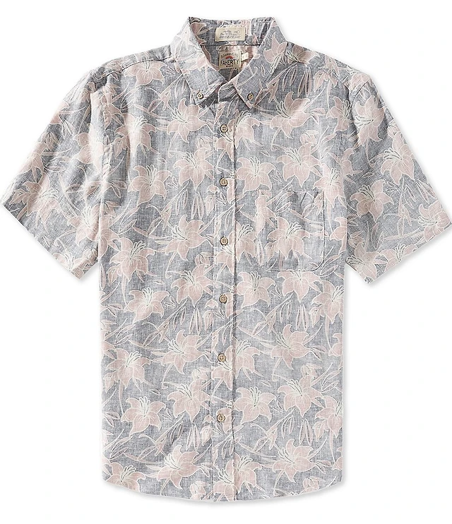 Faherty Breeze Camp Tree Print Short Sleeve Woven Shirt