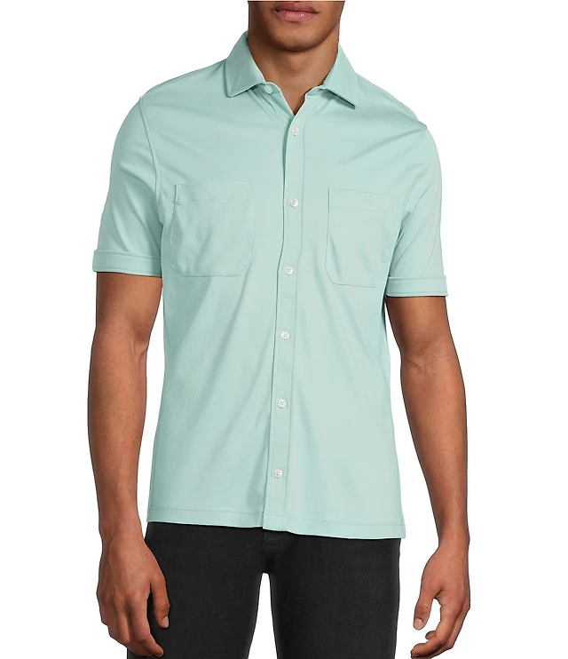 Murano Liquid Luxury Short Sleeve Knit Interlock Solid Coatfront Shirt