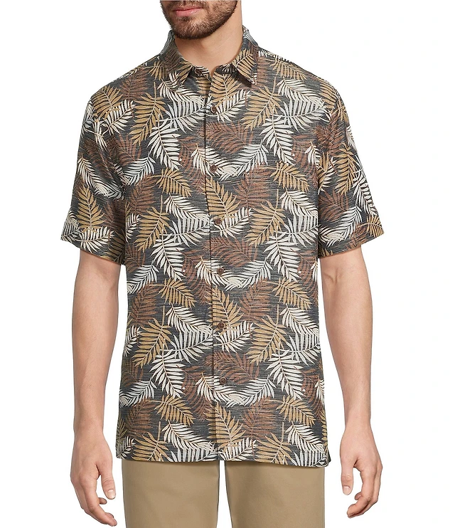 Roundtree & Yorke Big & Tall Short Sleeve Leaf Print Polynosic Woven Shirt