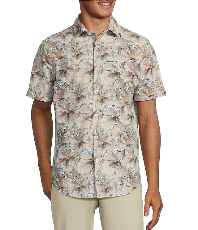 Murano Collezione Slim Fit Floral Print Performance Stretch Short Sleeve Woven Shirt