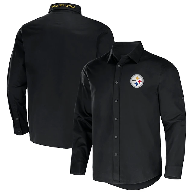 Men's Antigua Black Cleveland Browns Exposure Woven Long Sleeve Button-Up Shirt