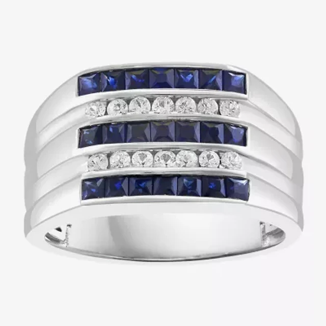 Mens Diamond Accent Lab Created Blue Sapphire Sterling Silver Fashion Ring