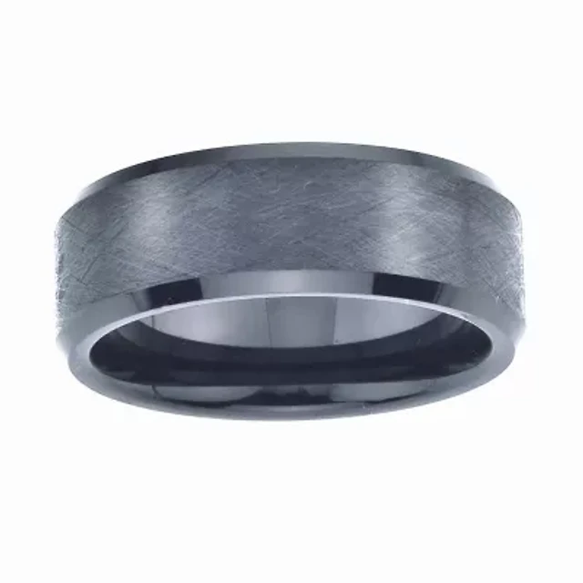 Mens Black Zirconium Textured Wedding Band