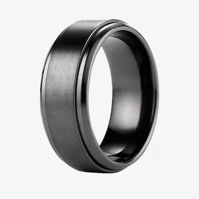 Mens Diamond-Accent Black Stainless Steel 10mm Wedding Band