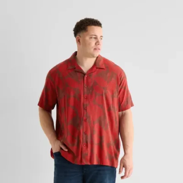 Arizona Mens Short Sleeve Regular Fit Big and Tall Button-Down Shirt