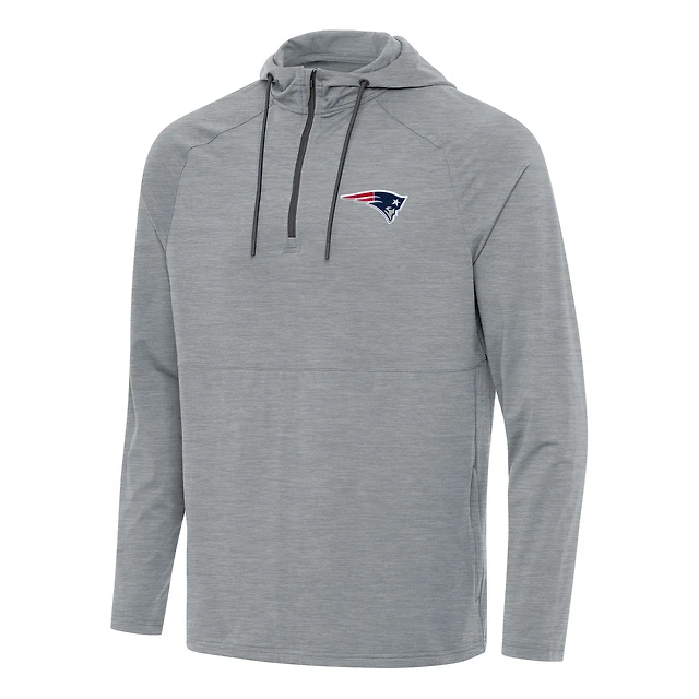 Men's Antigua Royal New England Patriots Throwback Logo Tribute Quarter-Zip Pullover