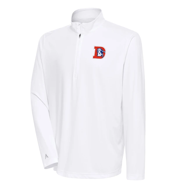 Men's Antigua White New England Patriots Team Logo Throwback Tribute Quarter-Zip Pullover Top